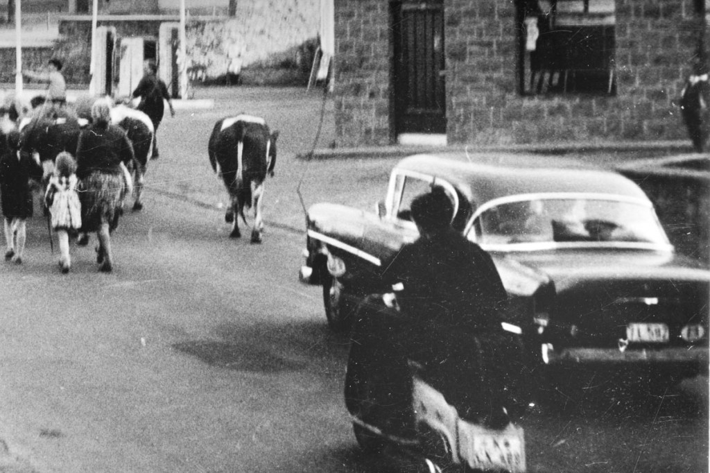 1964-06-25 Ansichtskarte Bonnerstraße Die Kühe werden durch das Dorf getrieben, recht gehen die Kühe ordnungsgemäß auch über den Fussgängerweg. Kommentare sind geschlossen.