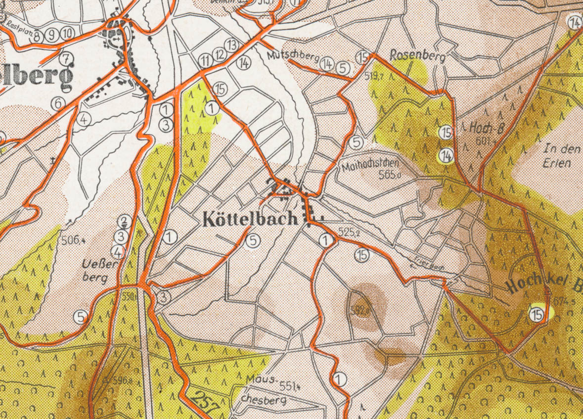 Einer kleineren Wanderkarte und einer gelaufenen ( versendeten ) Ansichtskarte.