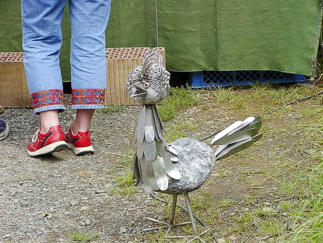 Die Arbeiten der Handwerker sind aus Holz wie Musikinstrumente, Küchengeschirr,Bilderrahmen, Holzleuchten. Aus Ton getöpferte Schalen, Vasen, Tiere, Tassen, Lampenhalter. Stoffe von Schafewolle für Kleidung, Bettdecken, Tischschmuck. Metall Arbeiten mit geschmiedeten Tierbildern, gelasert und verrosteten Gartenleuchten, Feuerschalen…und, und Schmuck, Essen, Düfte, Kinderkleidung, Kerzen, Leuchten. Bis Z wie Zeichner, mit Cartoon Bilder von Menschen in der Stimmung ernsthaft oder eher lustig mit Hündchen. Wenn man die Werke und Arbeiten betrachtet, merkt man immer, da hat jemand, sein ganzes Geschick, mit viel Liebe bis ins Detail gegeben.